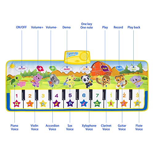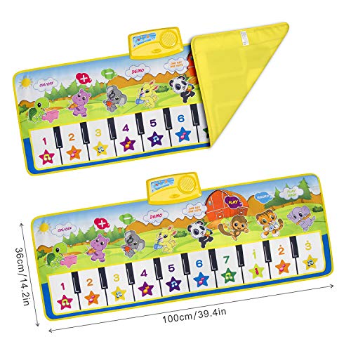 Multi-geluidseffecten: 8 piano funcuin-toetsen en 7 soorten dierengeluiden en uitspraak, de zoete muziek kan het gehoor van de kinderen simuleren. Dit opvouwbare toetsenbord-speelmatgeluid is helder met een knipperend lichteffect. U kunt ook het volume van de muziekdeken aanpassen om het volume te kiezen dat het beste bij uw kind past
