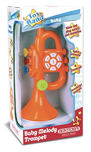 Baby Trumpet, 8 demosongs met arranger, 8 demosongs zonder arranger, 8 ritmische begeleidingen, uitvoering van de 8 muziekstukken door in het mondstuk, 3 muzieknoten die door het indrukken van de 3 gekleurde toetsen en inblazen in het mondstuk kunnen worden gespeeld, volumeregelaar, lichteffecten, vereist: 3 babybatterijen van 1,5 V (niet inbegrepen) • Afmetingen: 100 x 257 mm.