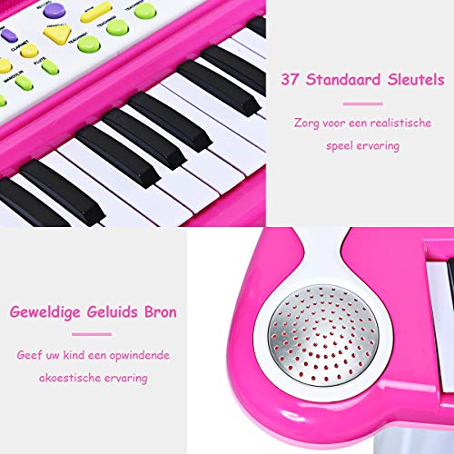 COSTWAY 37-toets kinderen Elektronische piano toetsenbord speelgoed muziek instrument met afneembare microfoon en kruk…