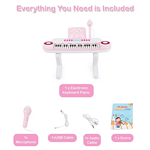 Specificaties: COSTWAY 37 toetsen elektronische toetsenbord piano voor kinderen, draagbare speelgoed piano met ritme licht, microfoon…