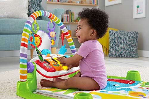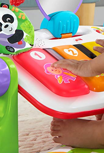 Fisher-Price Fitnessstudio piano kicks leermat met accessoires, lichten en geluiden, speelgoed voor pasgeboren baby’s, Spaanse versie (GXC37)