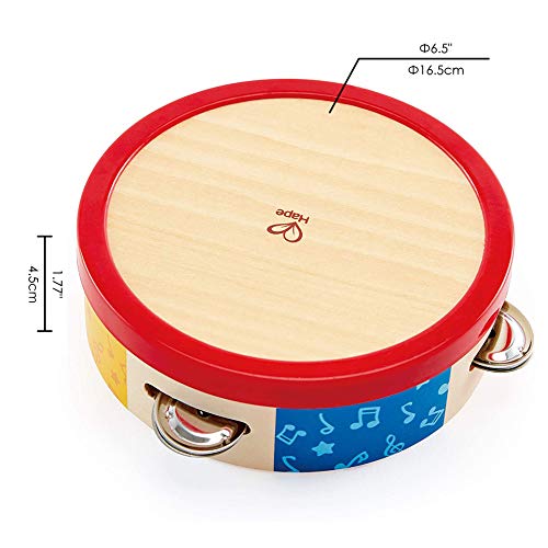 Hape E0607 Kleurrijke Tamburijn van Hape | Houten tamburijn trommel voor kinderen, muziekinstrument voor kinderen vanaf 12 maanden