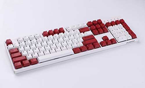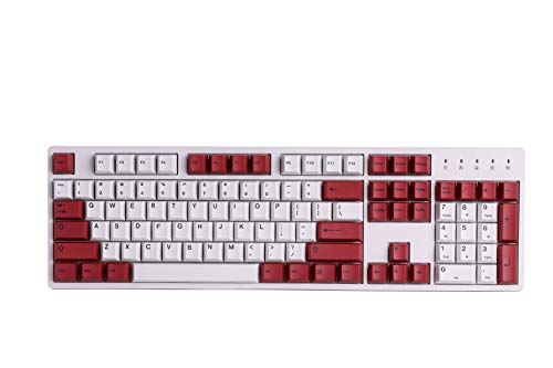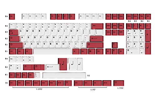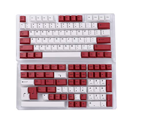 HK Gaming Kleursublimatie keycaps, Cherry-profiel, dikke PBT keysets voor mechanisch toetsenbord (139 toetsen, wit-rood)