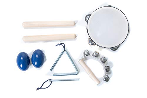 De percussieset voor kinderen biedt een ideale instap in de wereld van de muziek voor kinderen. Het bevat vooral voor peuters en kleuters ideaal geschikte instrumenten, met goede geluidseigenschappen voor vroegtijdige muzikale opvoeding. Daardoor is deze set van percussie-instrumenten overal ideaal inzetbaar waar het gaat om de vroege muziekindustrie, of het nu op de kleuterschool, op school, bij muziektherapie of voor andere muzikale en pedagogische activiteiten. Natuurlijk kun je deze set ook eenvoudig als muziekspeelgoed gebruiken. Vanwege de meerdelige set kunnen ook meerdere kinderen ermee samen musiceren en dus een eerste kinderband, een speelmannetje of zelfs een mini-orkest vormen. Deze kinderinstrumentenset zal je kinderen in elk opzicht gewoon inspireren en is overigens ook een perfect cadeau-idee.