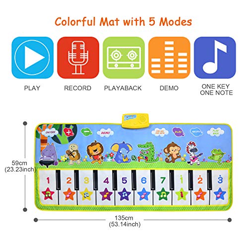 【Nieuwste stijlontwerp】 Muziekpad met uniek innovatief design, schattige cartoonpatronen, gevoelige touch, 8 muziekinstrumenten ingebouwde luidspreker en opnamefunctie, 10 muzikale toetsenborden en 10 vrolijke kinderrijmpjes. Perfecte combinatie van piano en speelmat.