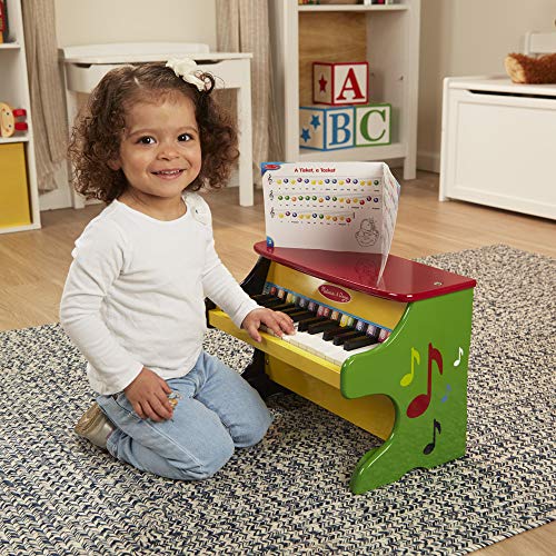 HELDERE geschilderde houten piano: De Melissa en Doug Learn-to-Play Piano is een rechtopstaande houten piano met 25 toetsenzand 2 volle octaven.
