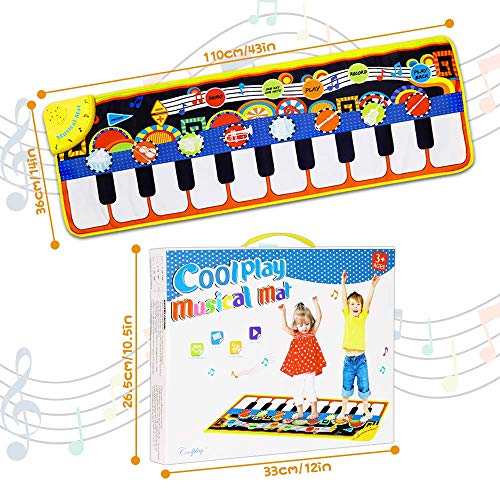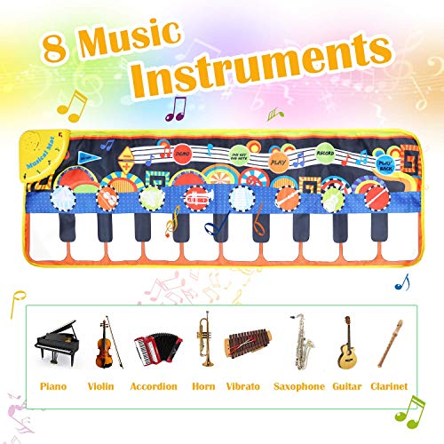 Queta Piano mat, 19 toetsen muziek dansmat pianomat muziekmat, 5 modi & 8 muziekinstrument speelgoed touch keyboard…