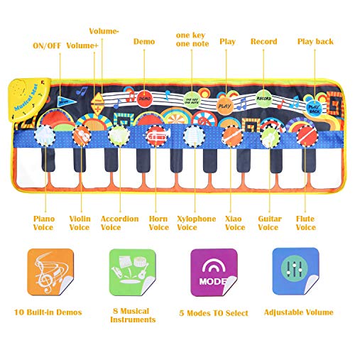 Specificaties: Queta Piano mat, 19 toetsen muziek dansmat pianomat muziekmat, 5 modi & 8 muziekinstrument speelgoed touch keyboard…