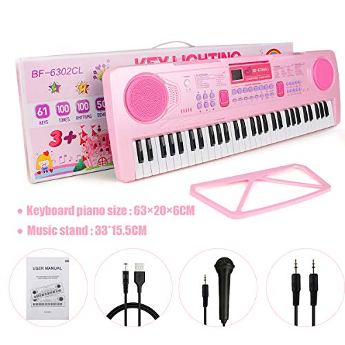 RenFox Kids Piano, keyboard met 61 toetsen, elektronische orgelmuziek, karaoke piano met microfoon, voor kinderen, cadeau
