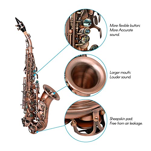 Specificaties: Ytytyt Rood Antieke Sopraan Saxofoon BB Sleutel Woodwind Instrument Met Case Sax Stand Riet Handschoenen Reinigingsdoek…