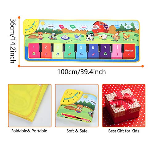 8 Animal Sounds & 10 Pianotoetsen – Kinderpianomuziekmat bevat 8 dierlijke geluiden (kat, hond, gans, vogel, koe, schapen, paard en kuiken), waardoor kinderen eerder dieren kunnen begrijpen en de waarneming van geluid van kinderen kunnen verbeteren. (Houd er rekening mee dat: 3AA Batterijen niet inbegrepen.)